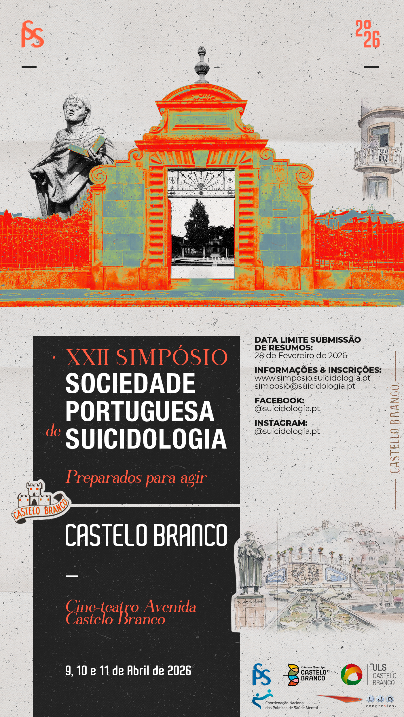 Junte-se a nós e partilhe o XXII Simpósio da Sociedade Portuguesa de Suicidologia. Utilize os materiais de divulgação e a hashtag #suicidologia2026.